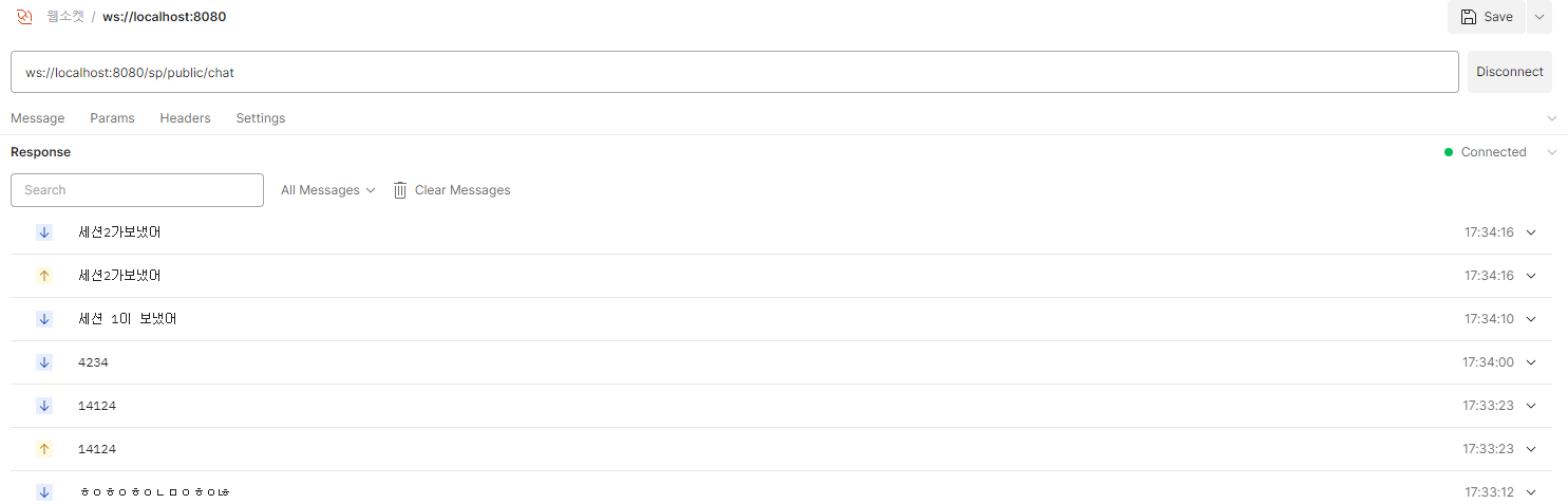 PostMan을 통하여 메세지 전송 테스트를 진행했고 크게 문제 될 것 없이 진행되었다.