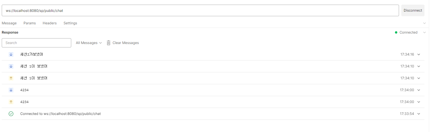 PostMan을 통하여 메세지 전송 테스트를 진행했고 크게 문제 될 것 없이 진행되었다.