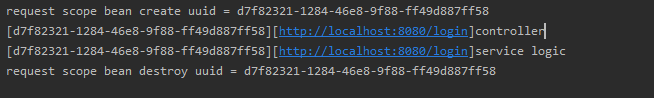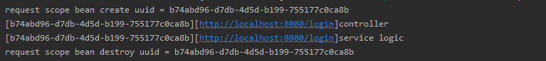 - request 범위에 있기 때문에 요청이 있을때까지 bean의 인스턴스가 생성되지 않으며, reqquest scope를 가진 bean을 주입 받아 사용하는 클래스는 웹 어플리케이션이 시작 될 때 자동으로 인스턴스화 하는데 이때 request scope를 가진 bean을 바로 주입하는것이 아닌 rpoxy 인스턴스를 생성하여 주입하여야한다.