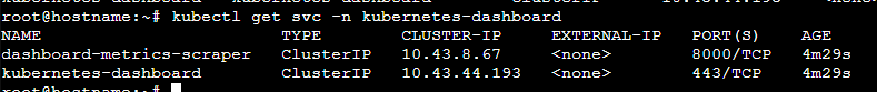 kubectl get svc -n kubernetes-dashboard
