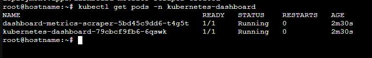 kubectl get pods -n kubernetes-dashboard
